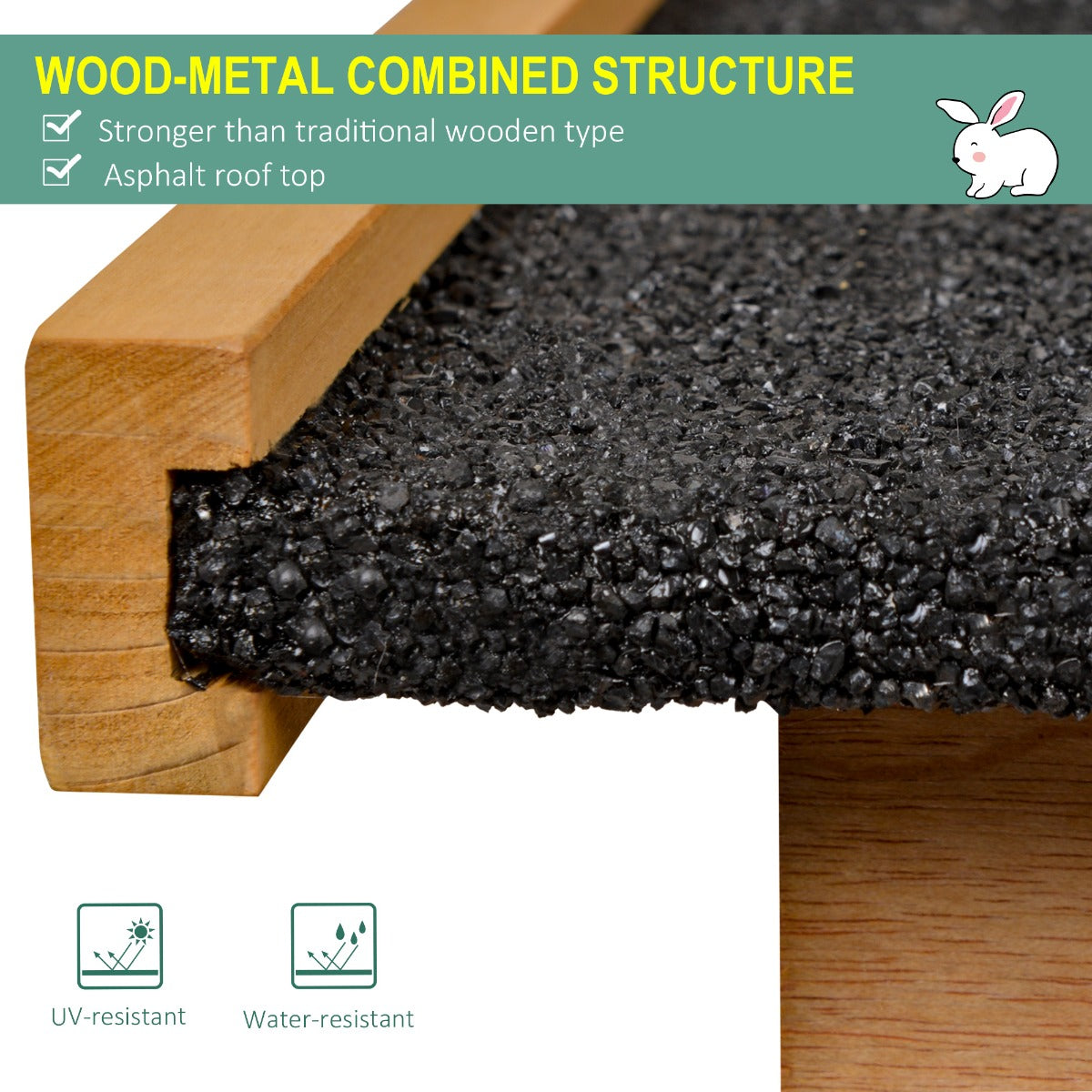 PawHut Wood-metal Guinea Pigs Hutches Elevated Pet House Outdoor 89.5 x 45 x 81cm - Black, Natural Wood