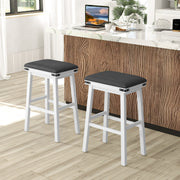 Crafted for your utter relaxation, these stools boast a soft seat cushion, ensconced in high-quality PU leather, and cushioned with the gentle touch of a soft sponge. Rest easy for hours on end, as these opulent stools provide luxurious comfort that knows no bounds. Infusing any space with a vintage farmhouse allure, their rivet accents and elegant finish effortlessly elevate decoration, creating a nostalgic charm. These barstools are engineered with stable construction and exquisite workmanship. Moreover, their waterproof upholstery is conveniently cleaned, guaranteeing easy maintenance. If you are looking for such a product, do not hesitate to buy it! Ultimate Comfort of Padded Seat: These backless bar stools feature a luxuriously upholstered seat, which is covered with skin-friendly PU leather and padded with a soft sponge. It will give you unparalleled comfort for extended periods of sitting. Vintage and Farmhouse Style: Transform your space with the retro design of bar stools. Their rivet accents and refined finish effortlessly elevate any kitchen island, bar area, or home entertainment space, making them a stylish addition to your decor. Reliable Wood Construction: Crafted with selected materials, solid rubber wood and acacia wood, these kitchen stools are built to last. The sturdy wood frame allows you to enjoy your drinks or meals without worrying about wobbling or discomfort. Extra Thoughtful Features: The crossbars under the seat not only reinforce the structure but also serve as sturdy footrests for better relaxation. What's more, there are also non-slip foot pads for enhanced stability and floor protection. Easy Assembly and Maintenance: No need to worry about complicated assembly processes. These bistro stools come with clear and detailed instructions, making it a breeze to assemble them. Furthermore, the low-maintenance upholstery can be easily cleaned, ensuring hassle-free upkeep.