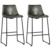 Set of 2 Vintage Faux Suede Bar Stools-Grey
