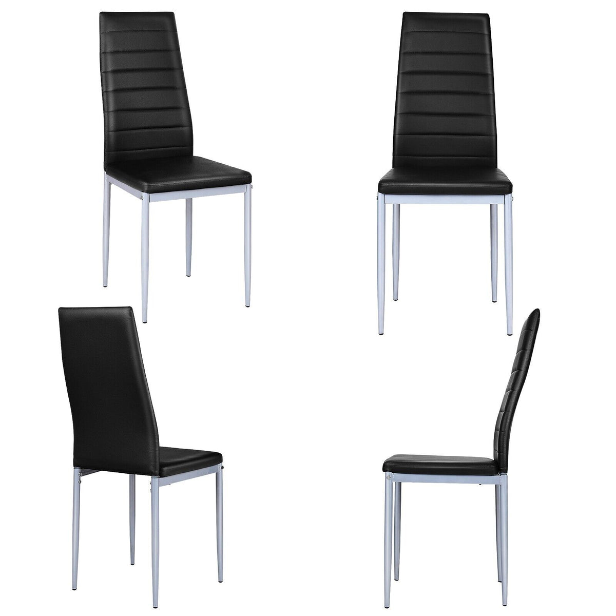 Set of 4 Armless Upholstered Dining Chairs with High Back-Black