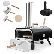 Enjoy delicious pizza every time with this manual 360° rotation outdoor pizza oven! Featuring a smooth-rotating 30 cm pizza stone and high-efficiency heating, this oven gets your pizza ready in minutes. Its three-layer construction with premium quality ensures superior heat retention and even distribution. Suitable for various fuels including wood, charcoal, and more, it caters to all your cooking needs. You can also use the oven to cook skewer, steak, bread and so on. Compact and portable with foldable legs and an included bag, it’s ideal for any outdoor space. Elevate your pizza game with this versatile and efficient outdoor oven. Manual 360° Rotation: This innovative outdoor pizza oven boasts a rotatable 30 cm pizza stone, smoothly turned via a stainless steel bottom tray with a rotating knob. Such design will heat the pizza evenly for better taste. High-Efficiency Heating: Ready to serve in minutes, this compact pizza oven heats up in just 8 minutes and cooks pizza in under 2 minutes. With a built-in thermometer, a convenient viewing hole and an adjustable chimney, you can simply monitor and control the fire. 3-Layer Construction: Built from 3 layers of materials, including stainless steel, insulated cotton, and spray-coated metal, the pizza oven retains and distributes heat efficiently while standing stable with reinforced legs. Multiple Fuel Choices: Compatible with various fuels including wood pellets, charcoals, and wood chips, this versatile oven will meet your multiple demands. And it comes with a 1.8 L detachable wood tray for easy maintenance. Space-Saving and Portable Design: When not in use, you can fold the legs and store the pizza oven to the protective bag, which is made of premium Oxford cloth for weather resistance. And therefore, you can easily carry it anywhere without effort.