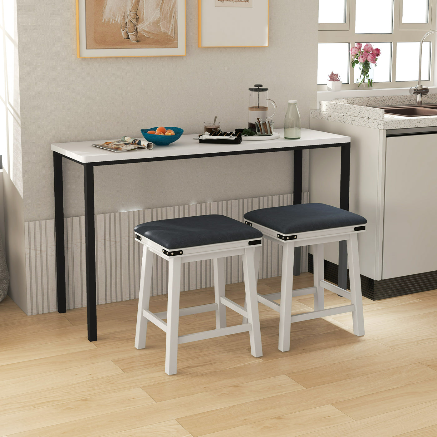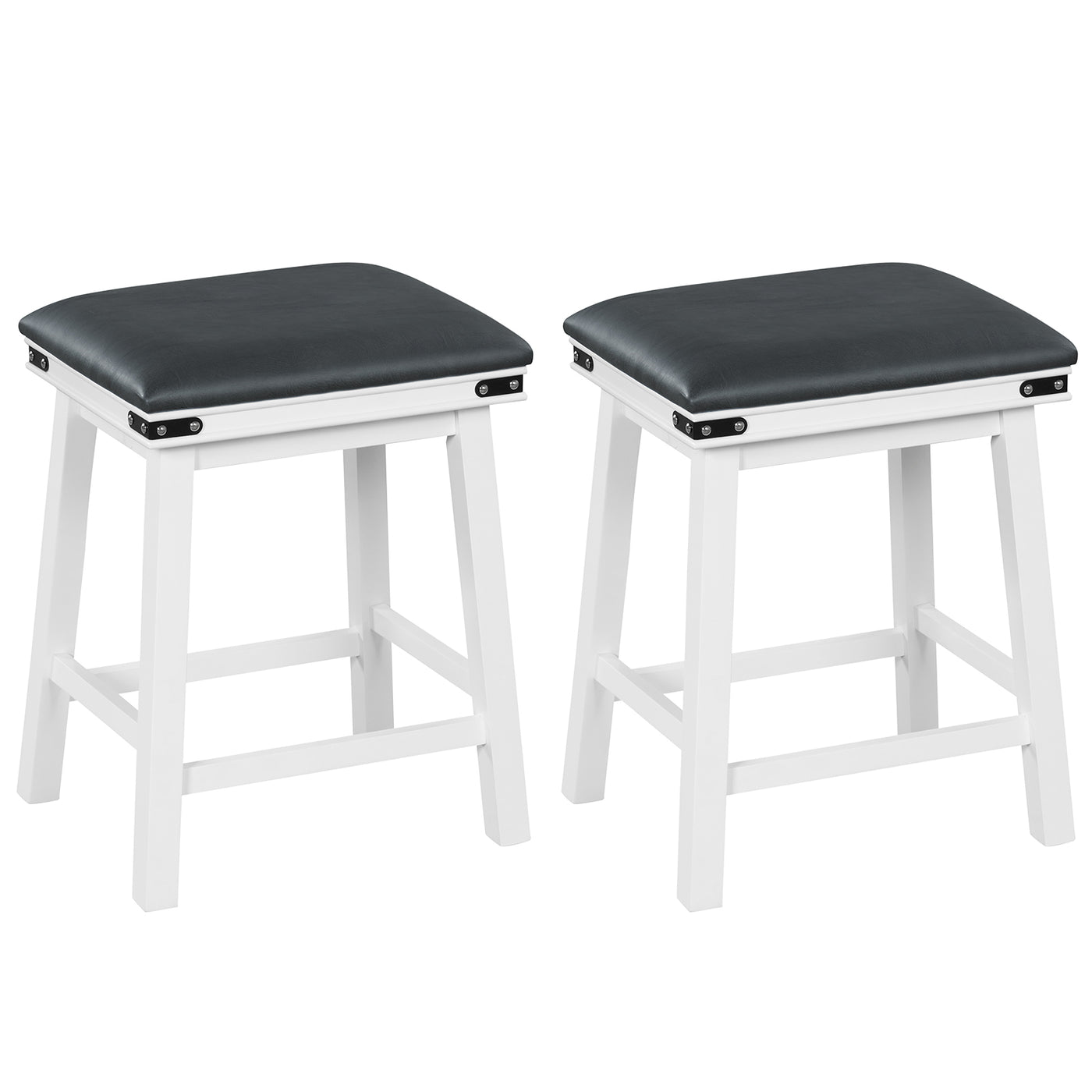 Upholstered Backless Bar Stools Set of 2 with PU Leather Padded Seat-White