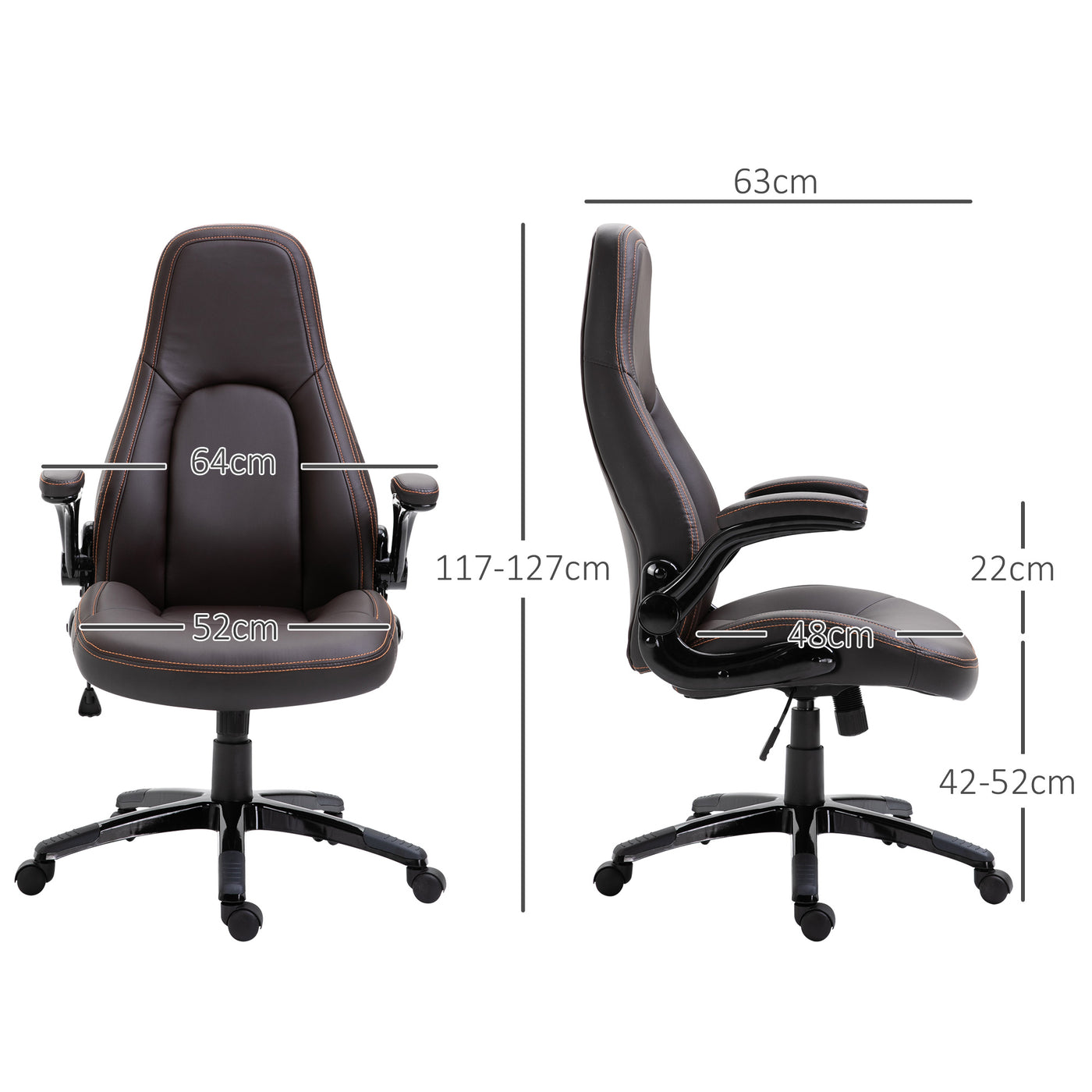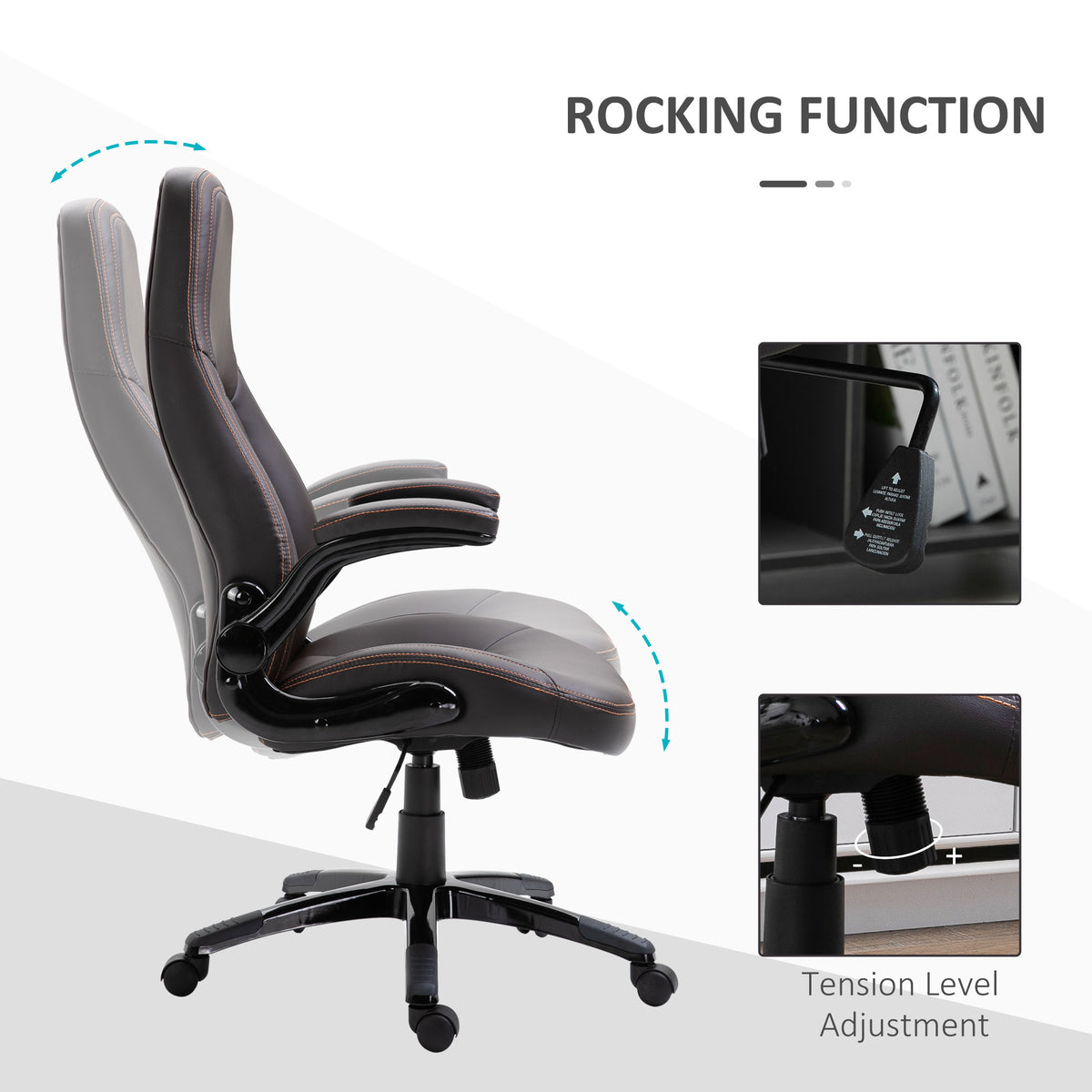 Vinsetto Computer Gaming Chair, PU Leather Office Chair, Swivel Desk Chair with Adjustable Arms and Height, Padded Armrest and Seat, Rolling Wheels, Coffee - Brown