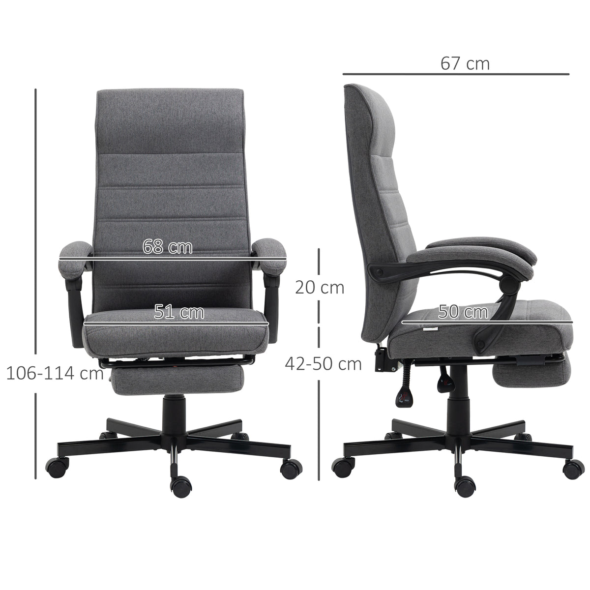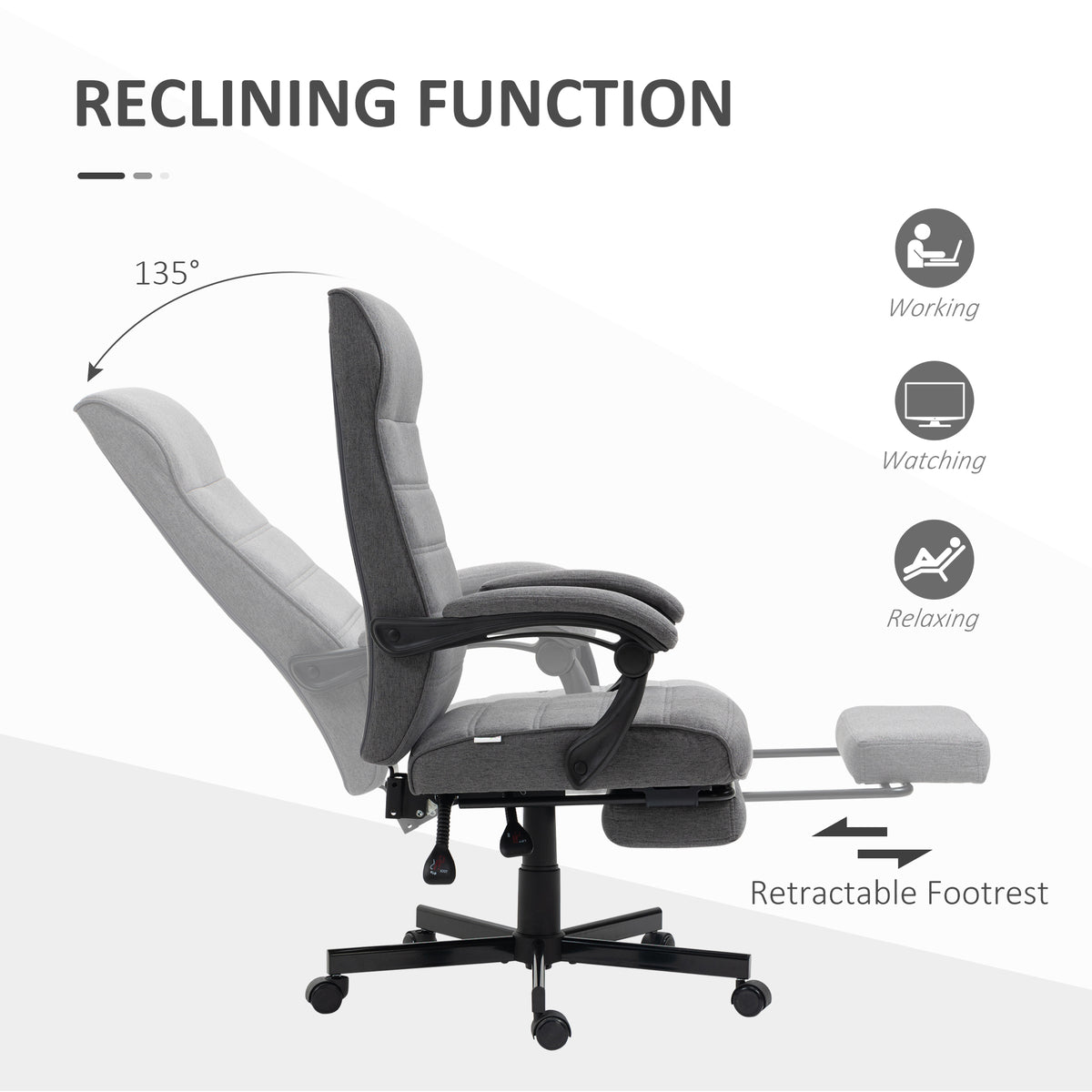 Vinsetto Office Chair, Computer Desk Chair, Fabric Swivel Chair with Adjustable Height and Rolling Wheels for Home Office Work Study, Grey - Grey