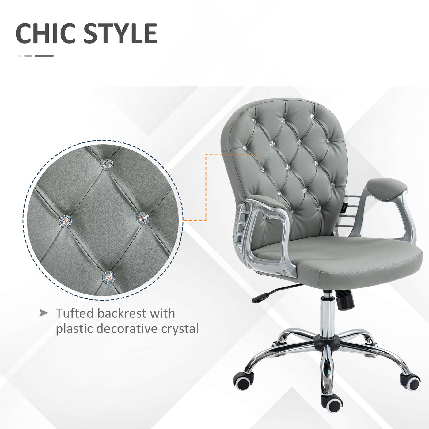 Vinsetto Office Chair Ergonomic 360° Swivel PU Diamante Padded Base 5 Castor Wheels for Home Work Grey - Grey