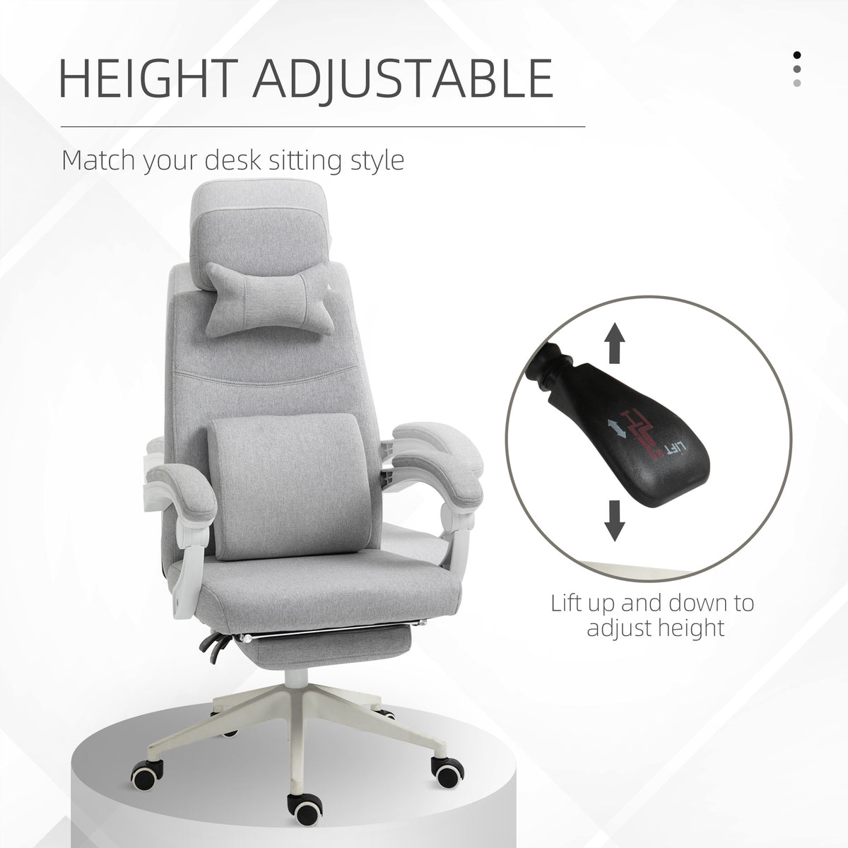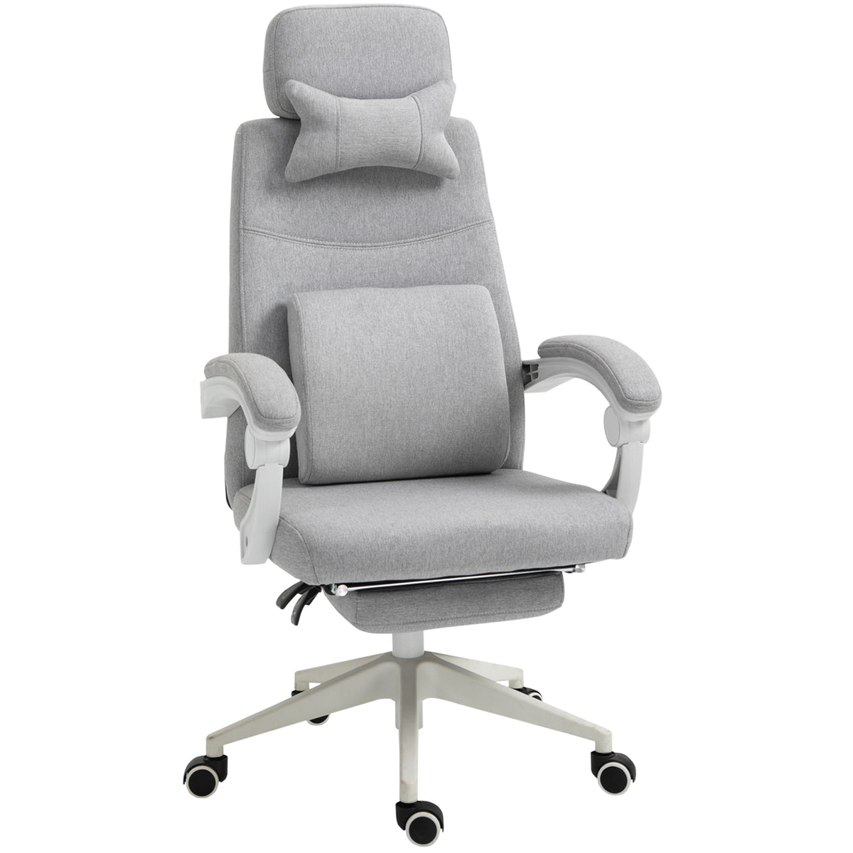 Vinsetto Office Chair, Ergonomic Desk Chair, High Back Fabric Work Chair with 160° Reclining Backrest, Retractable Footrest, Neck and Lumbar Pillow for Home and Study, Grey - Grey