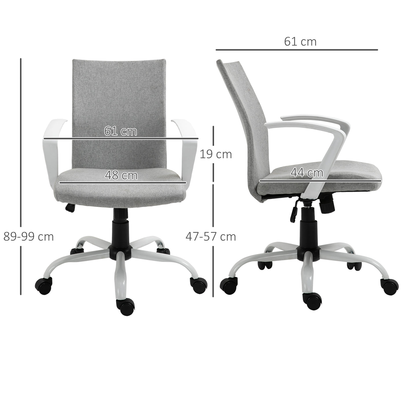 Vinsetto Office Chair Linen Swivel Computer Desk Chair Home Study Task Chair with Wheels, Arm, Adjustable Height, Light Grey - Light Grey