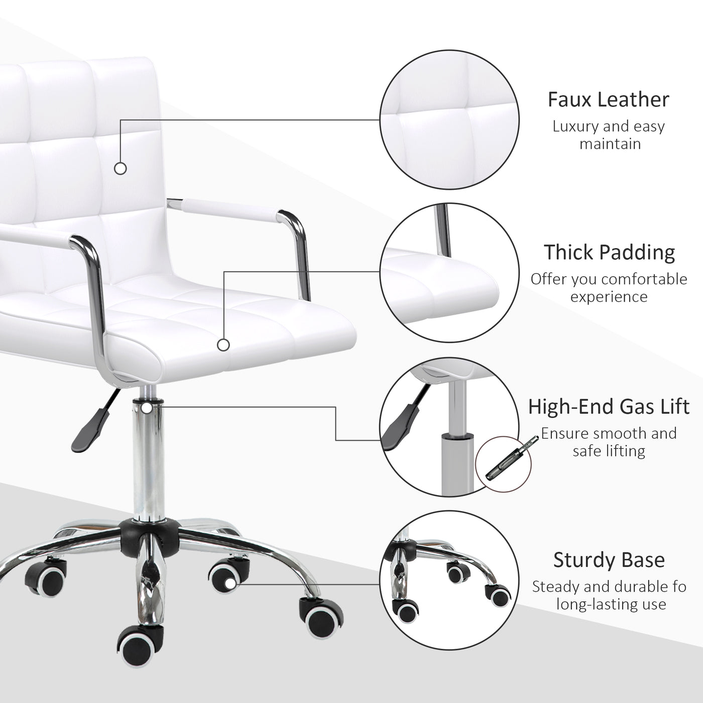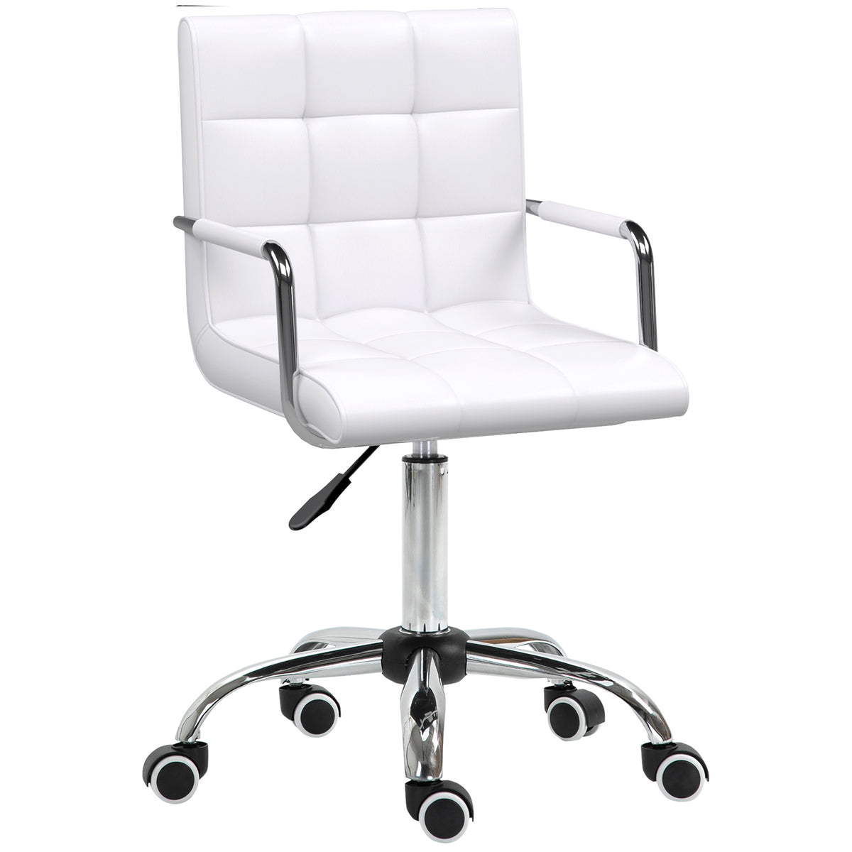 Vinsetto Office Chair, Makeup Vanity Chair, Mid Back Computer Chair, PU Leather Swivel Study Chair with Adjustable Height, Armrest and Rolling Wheels, White - White