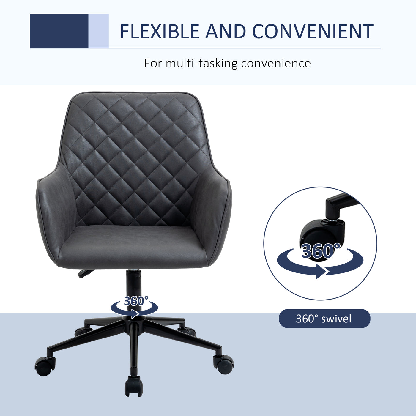 Vinsetto Office Desk Chair, Leather-Feel Fabric Computer Swivel Chair with Rolling Wheels and Adjustable Height for Home, Grey - Deep grey