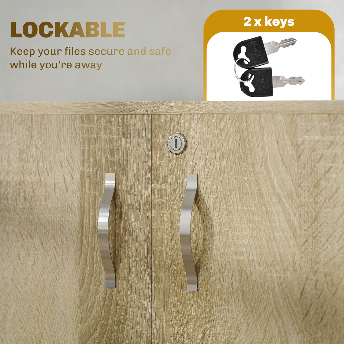 Vinsetto Two-Tier Locking Office Storage Cabinet - Oak - Oak