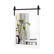 Make your life more exquisite and comfortable with this wall mirror! This high-definition mirror with explosion-proof protective film not only provides clear imaging without distortion, but also makes it safer to use in the home. The large wall mirror is framed in solid wood, ensuring great stability and durability. Featuring a rustic and farmhouse style, this rectangle wall mounted mirror fits almost everywhere in your room and can add elegant charm to the room. You can mount the mirror to the wall of your living room, bedroom, bathroom, entryway, etc to use it as avanity mirror or a home decor. The white plastic fixing pieces are designed to secure the back MDF board to keep the mirror flat. What's more, this wall mirror comes ready to mount with the pre-drilled holes in the metal bracket. (M4*40 expansion screws are required but not included). Explosion-proof HD Mirror: Made of high-quality glass material, this wall mirror has a high definition, providing a clear view for you when doing makeup or shaving. Moreover, the mirror is equipped with an explosion-proof protective film to ensure the safety of you and your family members during use. Natural and Solid Wood Frame: This wall-mounted decorative mirror is framed in thick and solid wood, which is stable, durable and not easy to crack. Besides, the surface of the heavy-duty metal bracket features electrophoresis treatment to enhance rust resistance for longer service life. Farmhouse and Rustic Style: Featuring a barn door inspired design and rustic wood grain surface, this wood framed wall mirror is a great combination of farmhouse style and vintage charm. In addition, the black metal bracket on the top adds speciality and a sense of chic to the mirror. Bring Elegance to Any Room: This farmhouse style wall mirror can brighten up your living space and offer a clear reflection from any angle. Besides, it can also serve as a decorative mirror or vanity mirror in any room of your home, such as bedroom, bathroom, living room, entryway, makeup room, etc. Easy Installation and Dimensions: This solid wood framed wall mirror comes fully assembled and is easy to install. Thanks to the pre-drilled holes in the metal bracket, you can mount this mirror to the wall with ease. Please note: M4*40 expansion screws are required (not included).