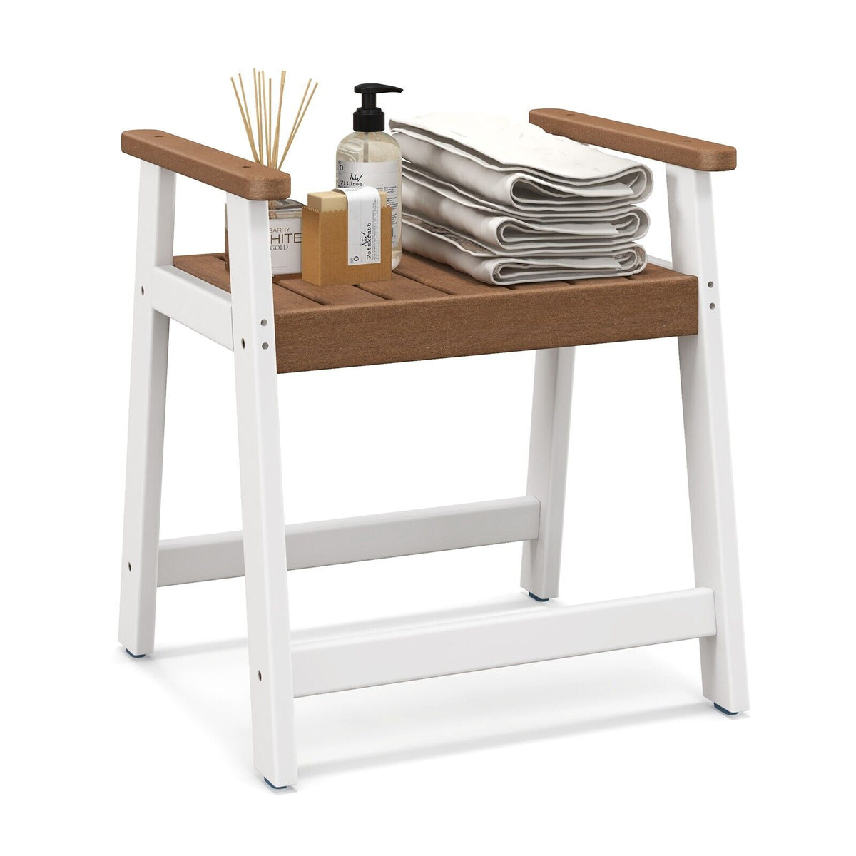 Waterproof HDPE Shower Bench with Armrests-Brown