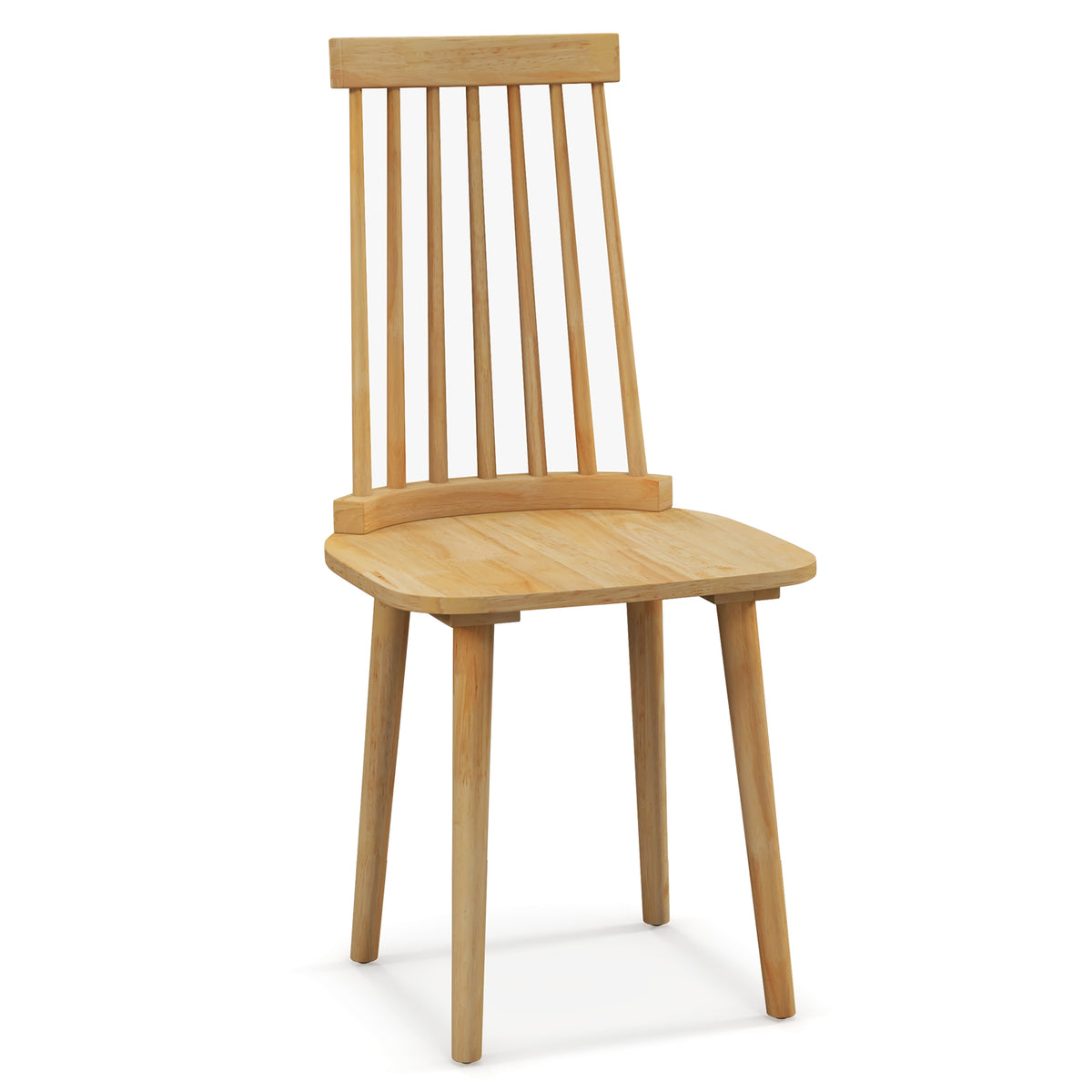 The spindle back and curved seat of our Windsor chairs provide you with a comfortable sitting experience. Solid rubber wood material makes chairs durable and stable. Each chair supports up to 400 lbs/ 180 kg. The non-slip foot pads also add extra sturdiness and prevent the floor from getting scratched. In addition, simple style and natural finish allow our chairs fit well with various room styles. These chairs are ideal for living rooms, kitchens, or restaurants. Robust Rubber Wood Frame: The Windsor dining chair boasts a natural rubber wood frame for high durability and a strong weight-bearing capacity of 400 lbs/ 180 kg. Supported by solid rubber wood legs, each chair keeps sturdy and steady. Ergonomic Windsor Chair: Each dining chair features a curved spindle backrest to offer comfortable support for your back. Besides, the wide and smooth seat allows you to better relax. More Considerate Details: 18”/45 cm optimal seat height enables you or your family members to conveniently stand up or sit down. Moreover, the reinforced structure and non-slip foot pads ensure enhanced stability. Applicable to Different Places: Thanks to its natural wood finish and classic Windsor style, each chair will bring a warm feeling to your rooms. This Windsor dining chair set can function well in your dining room, kitchen, coffee shop, or waiting area. Simple and Hassle-free Assembly: Simple structure and detailed user manual help you quickly finish assembly. Once assembled, the armless dining chair measures 18” x 17.5” x 37”/ 45.5 x 44 x 94 cm(L x W x H). The seat height from the ground is 18”/ 45 cm.