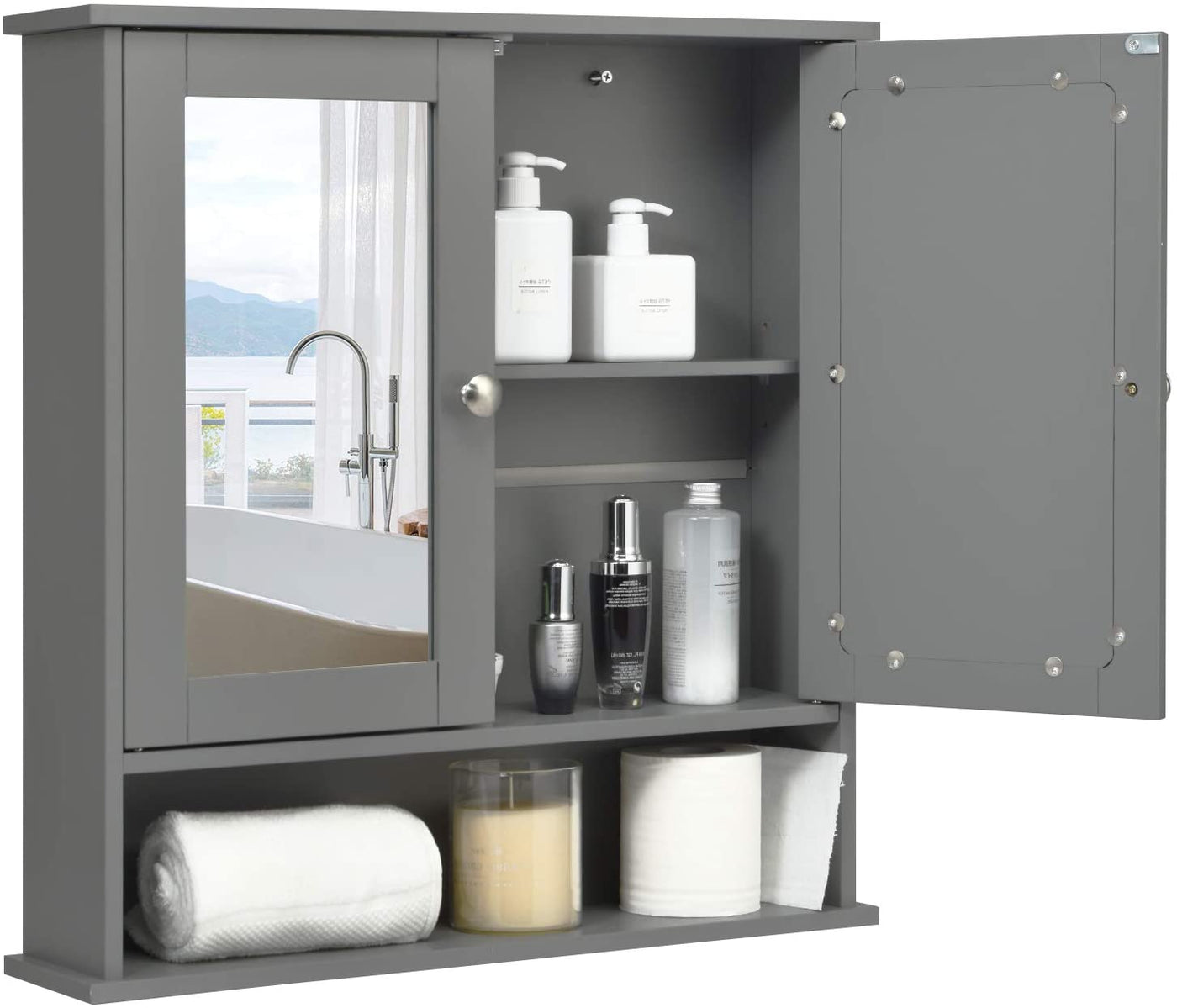 The wall cabinet is a space saver for living room, bathroom, etc. For your convenience, both of the doors have a mirror for daily dressing. If you are looking for a medicine organizer like this, do not hesitate to place an order! ‚óè Wall-Mounted Design to Save Space: The medicine cabinet can be simply attached to the wall to turn your empty wall in your home into a practical space, providing extra storage without taking up valuable floor space. The wall-mounted design maximizes the space of your room, which enables you to make your place clean. ‚óè Ample Storage Space with Adjustable Shelf: The upper enclosed cabinet stores your items neat and privately. Besides, the inner shelf can be adjusted with 3 positions to meet different height needs. And the lower open compartment can place often-used items, like soap, towels, shower gel, etc. ‚óè Double Doors with Mirrors: This bathroom cabinet features 2 doors with magnetic stopper, keeping the door closed tightly and safely when not in use. Plus, the high-definition built-in mirrors on both doors offer more convenience for your daily makeup or shaving. ‚óè Sturdy and Durable Construction: The wall-mounted cupboard is made of premium MDF material, which is sturdy, wear-resistant and durable to have strong bearing capacity. Moreover, the mirror cabinet is coated with NC painting, which is non-toxic and odourless for safe use. ‚óè Elegant Style for Wide Application: With simple and elegant style, this wall storage unit can be integrated into your home decoration perfectly. Combined with practicality and aesthetics, the cabinet is ideal for bathroom, living room, kitchen, hallway and other places.